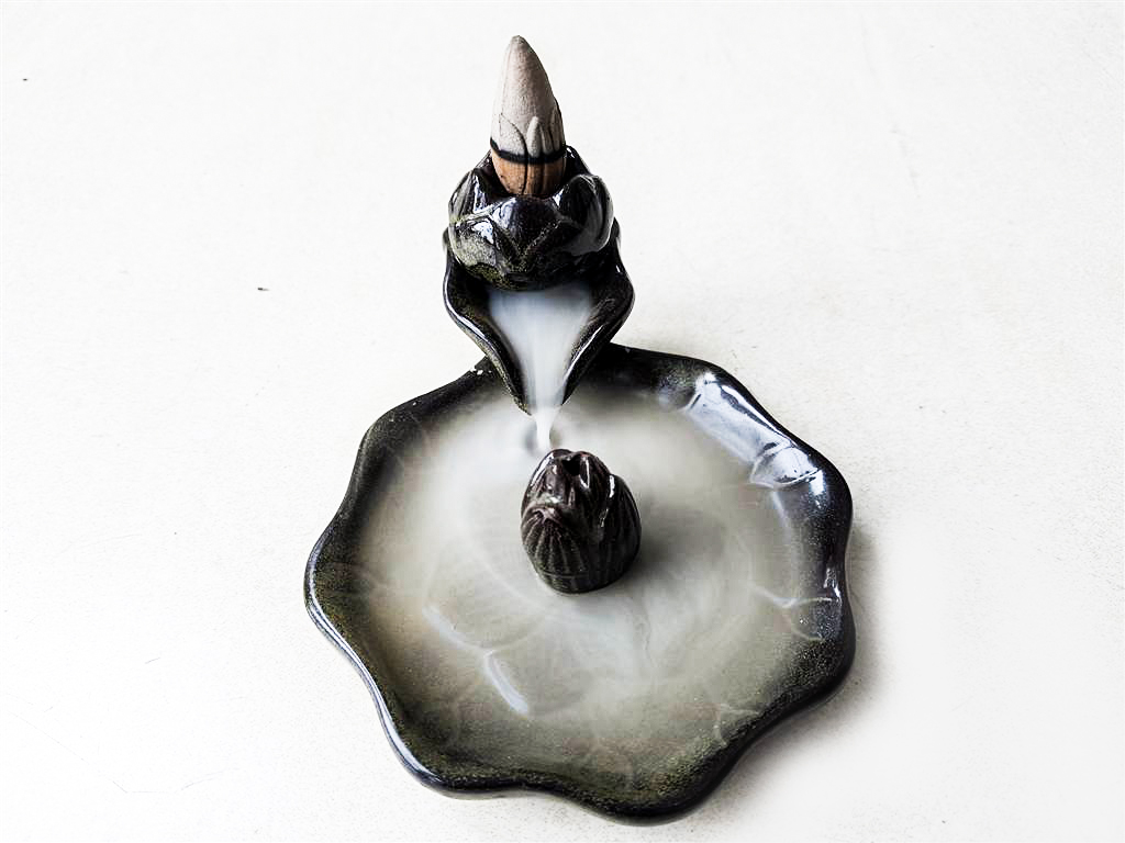Đây là cách đốt trầm sáng tạo, được ưa chuộng nhất hiện nay. Với cách này chúng ta sẽ sử dụng dụng cụ là thác trầm được chế tác với độ tinh xảo cao, đẹp mắt. Tiếp đó, dùng nhang trầm nụ bỏ phía trên đỉnh tháp và đốt. Khói trầm hương rất nặng nên sẽ luồn theo các khe được tạo tác trên thác và chảy xuống tạo nên “bức tranh” thác nước thiên nhiên vừa uốn lượn vừa mềm mại, uyển chuyển, dịu dàng.