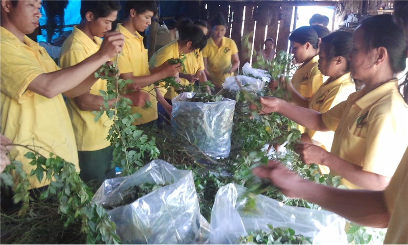 Công nhân đang sơ chế trà dây